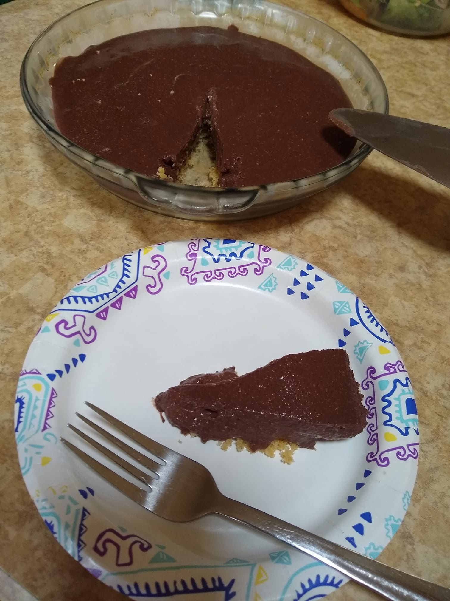 - Pour into pie pan over crust.
